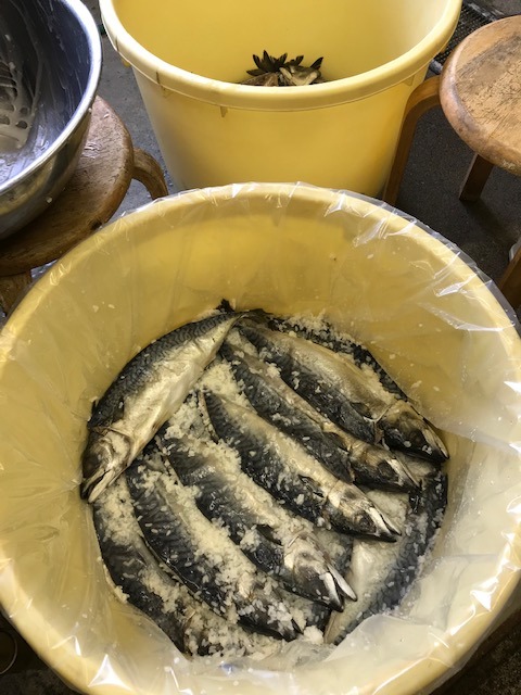 大きな脂乗り抜群の鯖で今年も「鯖のなれずし」の仕込みが出来てほっとしている女将です!